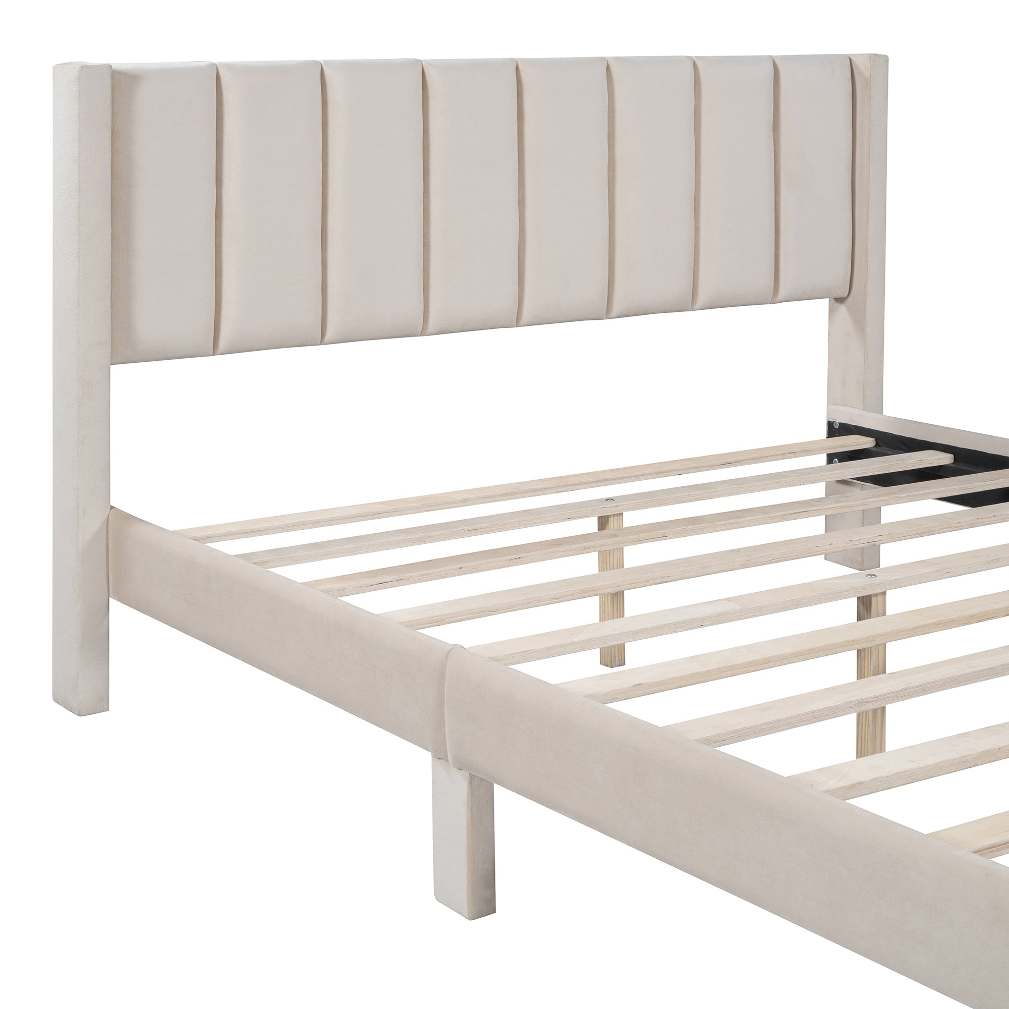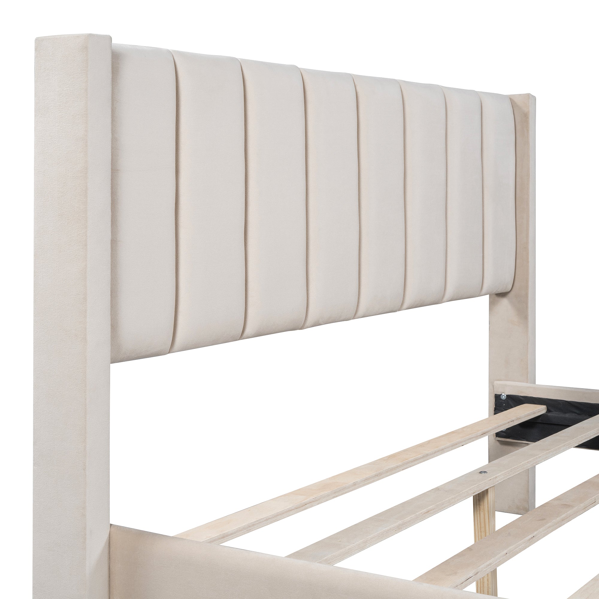 Create a calm, sophisticated bedroom with this queen-size velvet upholstered platform bed. Designed to combine timeless elegance, everyday comfort, and smart storage, this bed is both beautiful and practical.