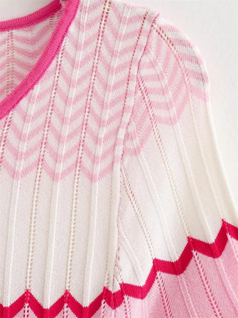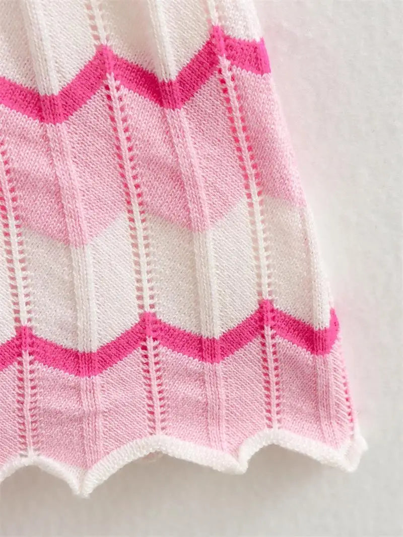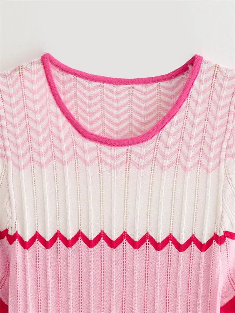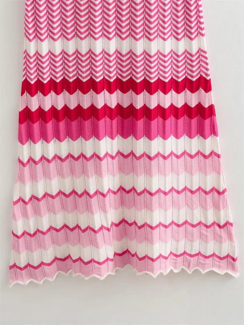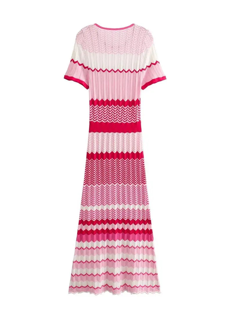 Fashion Striped Knit Long Dress Women Spring Autumn Short Sleeve Casual Striped Slim Thin Sweater Dresses